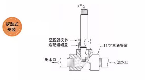 现场拆装传感器在安装上和旋转锁定式相似,但没有旋转锁定功能。该型号在设计上使用安装适配器和锁定适配 器和锁定适配器帽将电极固定到位,此电极可用于“1%NPT三通,也可用于1”NPT浸没式安装。该电极的特点在于只需更换电极头。