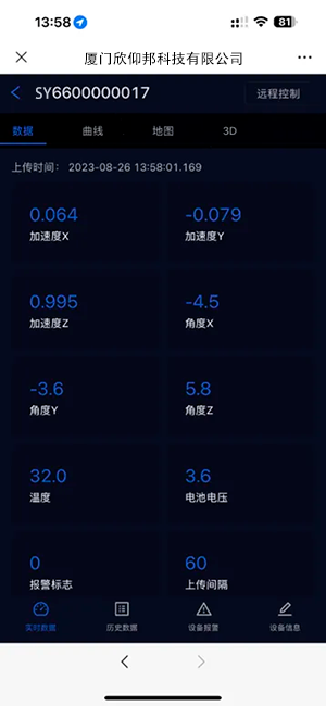 2. 产品自带角度报警功能,用户可自行设置报警值,当超过报警值时,传感器上报数据。倾斜报警,手机微信远程,响应速度快,监控稳定。手机看图