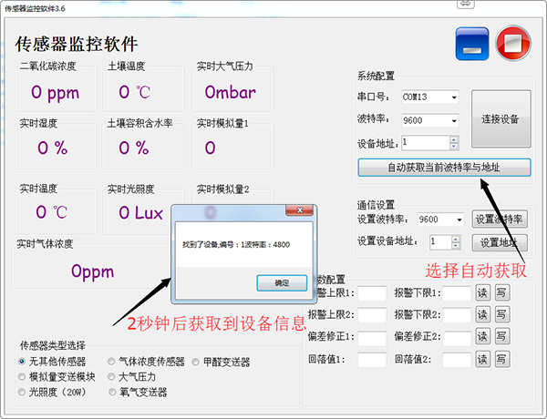 我司提供配套的“传感器监控软件”,可以方便的使用电脑读取传感器的参数,同时灵活的修改传感器的设备ID和地址。