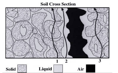 途径 2 是归因于土壤孔隙中水的导电性的途径。增加溶解盐会增加通路 2 的电导率;然而,与途径 1 一样,土壤含水量的增加将增加途径的尺寸,从而提高整体电导率。也就是说,有两个因素影响通路2的电导率,即溶解盐浓度和归因于土壤中水量的通路大小。